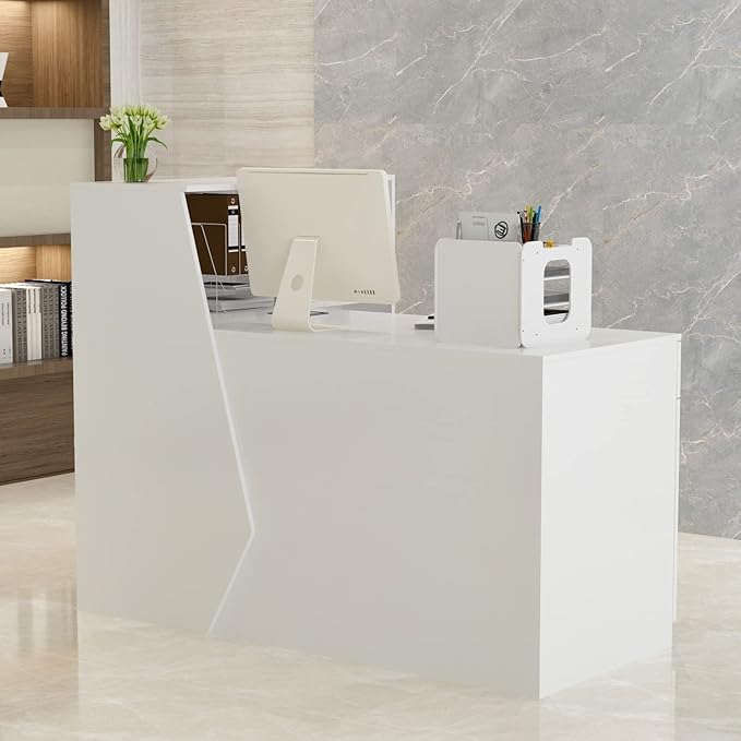- Built-in Storage: Features drawers and compartments for organizing office supplies and keeping the reception area tidy.