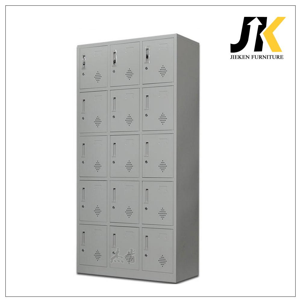Crafted from high-quality cold-rolled steel, this cabinet ensures long-lasting durability and resistance to corrosion, dents, and wear. Each of the 15 individual lockers comes with a built-in lock mechanism, offering users peace of mind and privacy for their items.