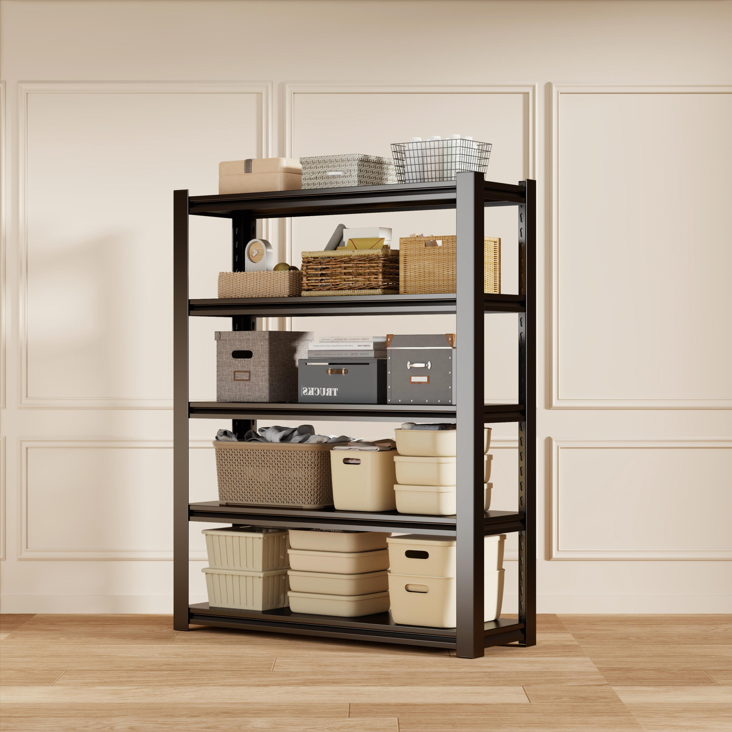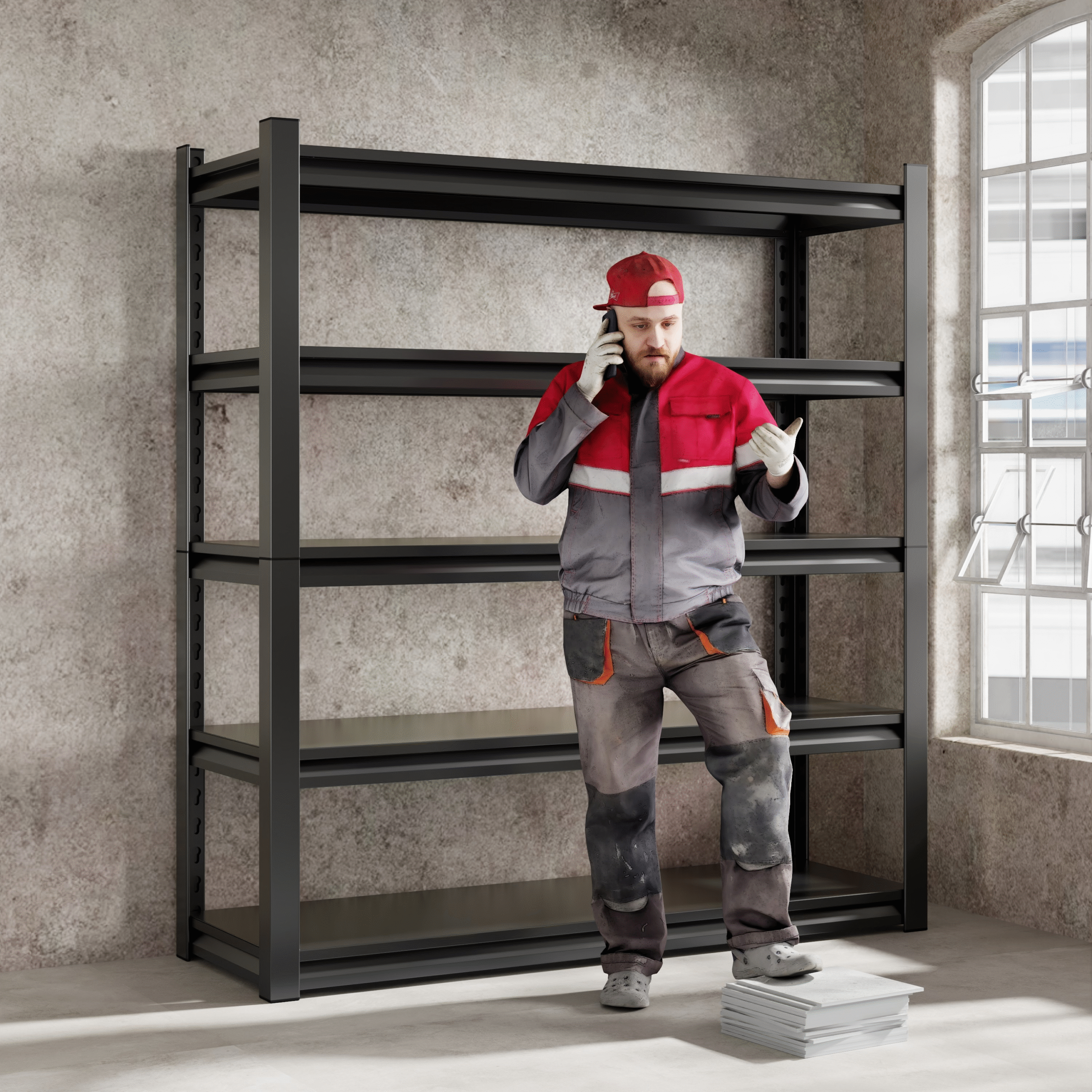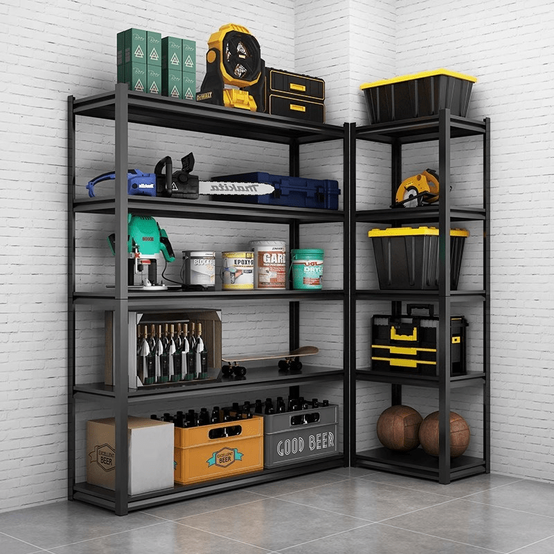 Constructed from high-quality black steel, this storage rack offers exceptional strength and stability. Each shelf supports a significant weight capacity, allowing you to store tools, pantry items, boxes, or cleaning supplies with confidence. Additionally, the powder-coated finish adds resistance against rust, corrosion, and everyday wear.