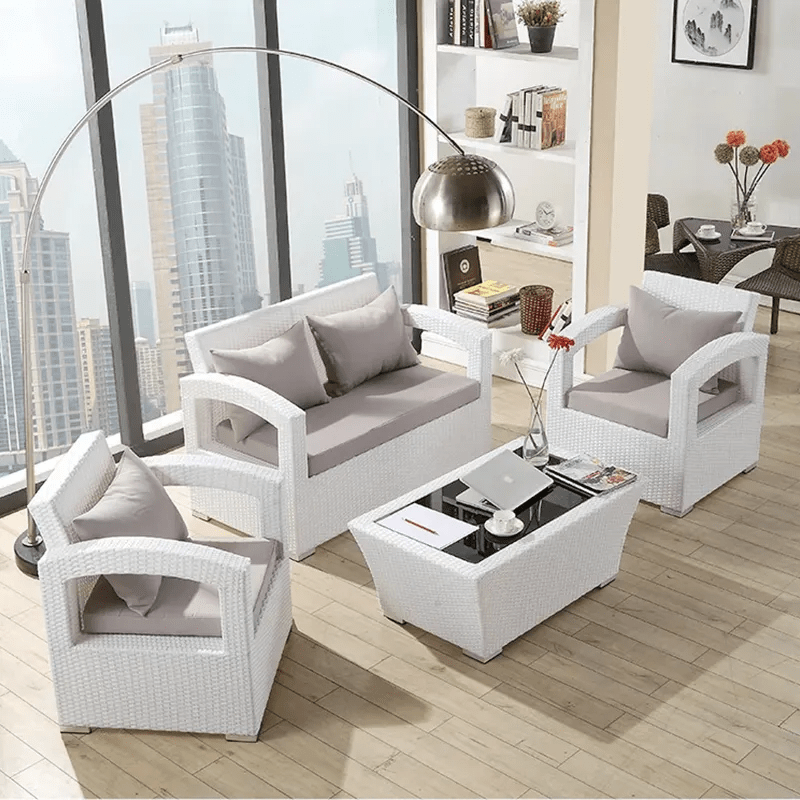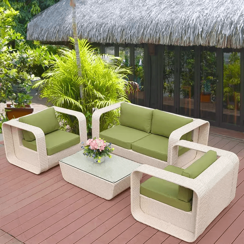 The cushions are removable and washable, while the wicker surface can be easily wiped clean. This ensures that the 5-seater wicker outdoor lounge set remains fresh, attractive, and low-maintenance for years of use.