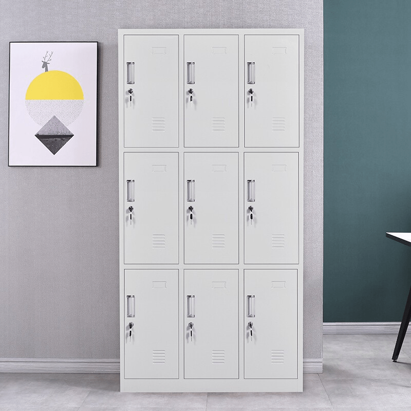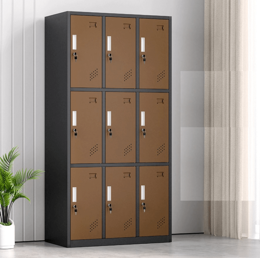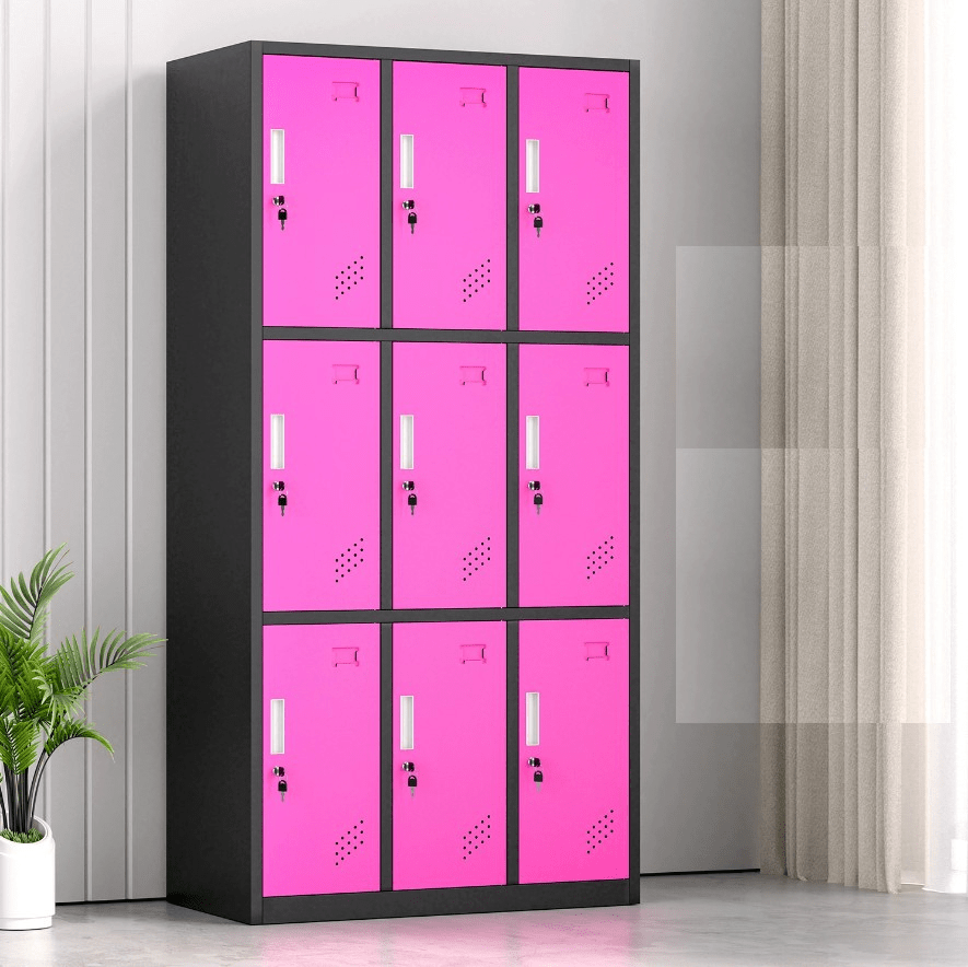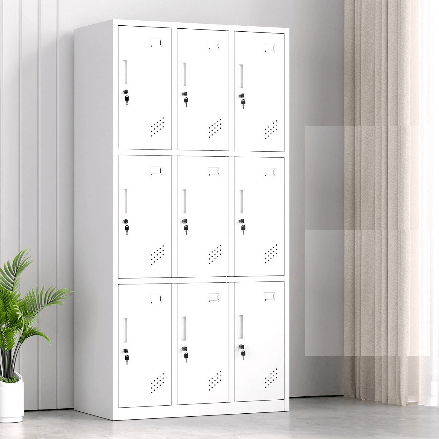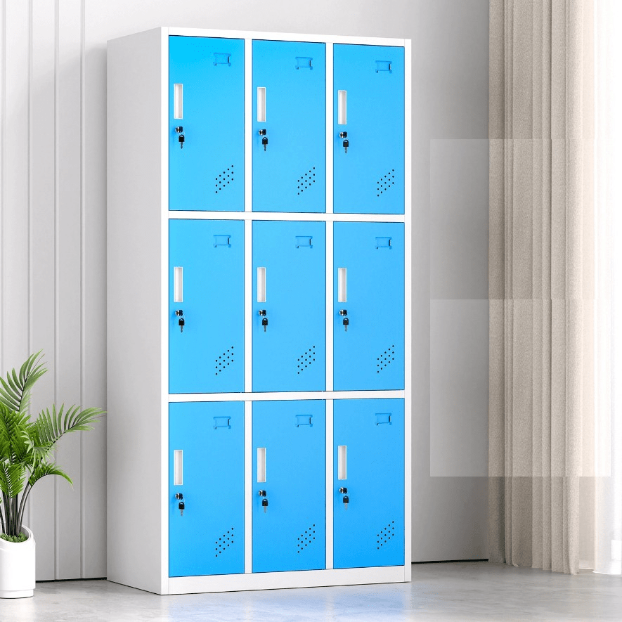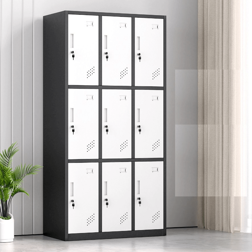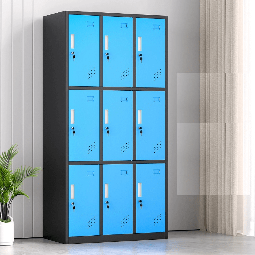 Constructed from durable, high-quality steel, the 9-locker cabinet ensures long-lasting strength and security. Each locker features a lockable door with a key, allowing individual users to safely store their items. Additionally, the cabinet’s powder-coated finish protects against scratches, rust, and wear, maintaining its professional appearance even in high-traffic environments.