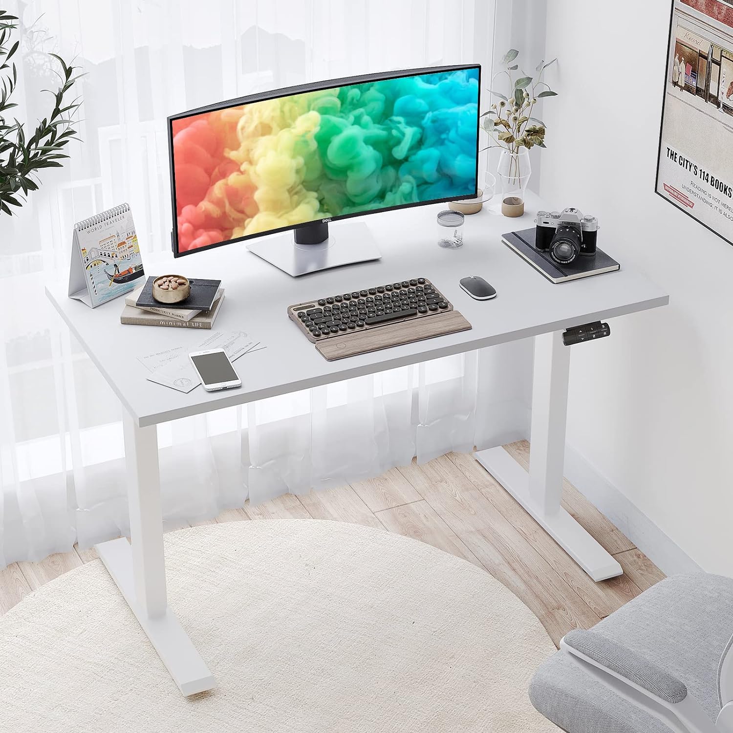 • Electric height adjustment mechanism for effortless transitions between sitting and standing positions