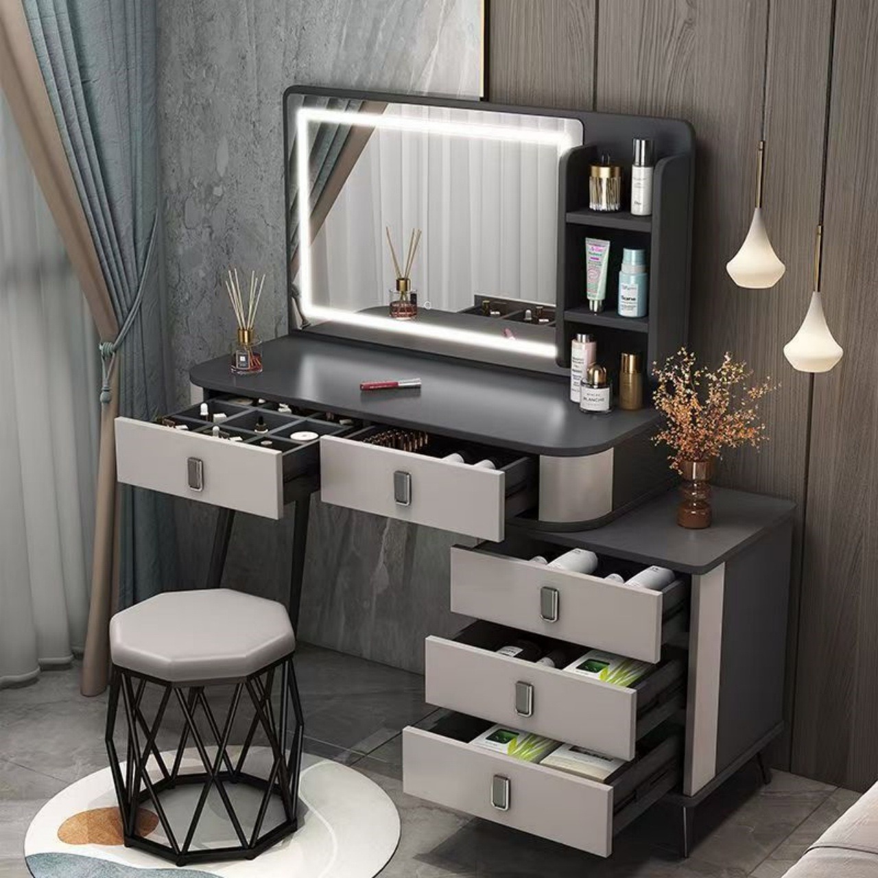 A dressing table set is designed with convenience in mind, offering drawers, shelves, and compartments to neatly store cosmetics, jewelry, perfumes, and grooming essentials. This helps keep your space organized while ensuring everything you need is within easy reach.