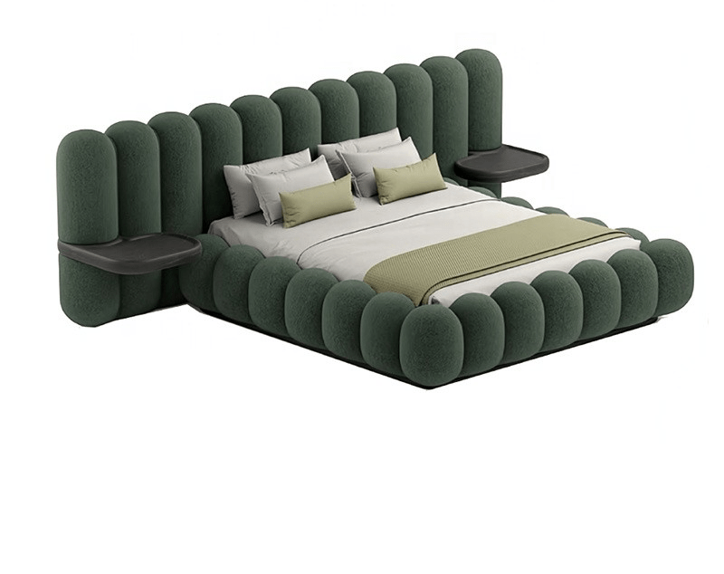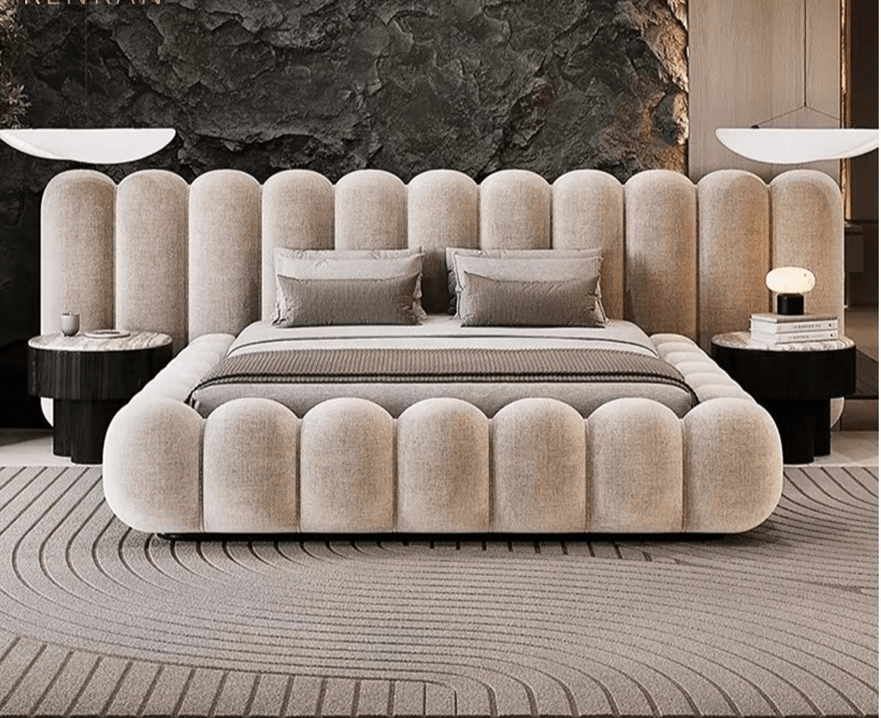 The Bubble Design King Bed Frame is a luxurious and contemporary centerpiece that brings both comfort and style to your bedroom. Featuring a distinctive bubble-inspired upholstered headboard and frame design, this bed adds a soft, elegant aesthetic while providing exceptional comfort and support. Crafted with a strong and durable internal structure, it ensures stability and long-lasting performance, making it suitable for everyday use. The plush padding enhances relaxation, while the high-quality upholstery—often available in premium fabric or leather—adds a refined finish that complements modern interiors. Designed to accommodate a king-size mattress, this bed frame offers ample sleeping space, making it perfect for master bedrooms, hotels, and upscale residential settings.