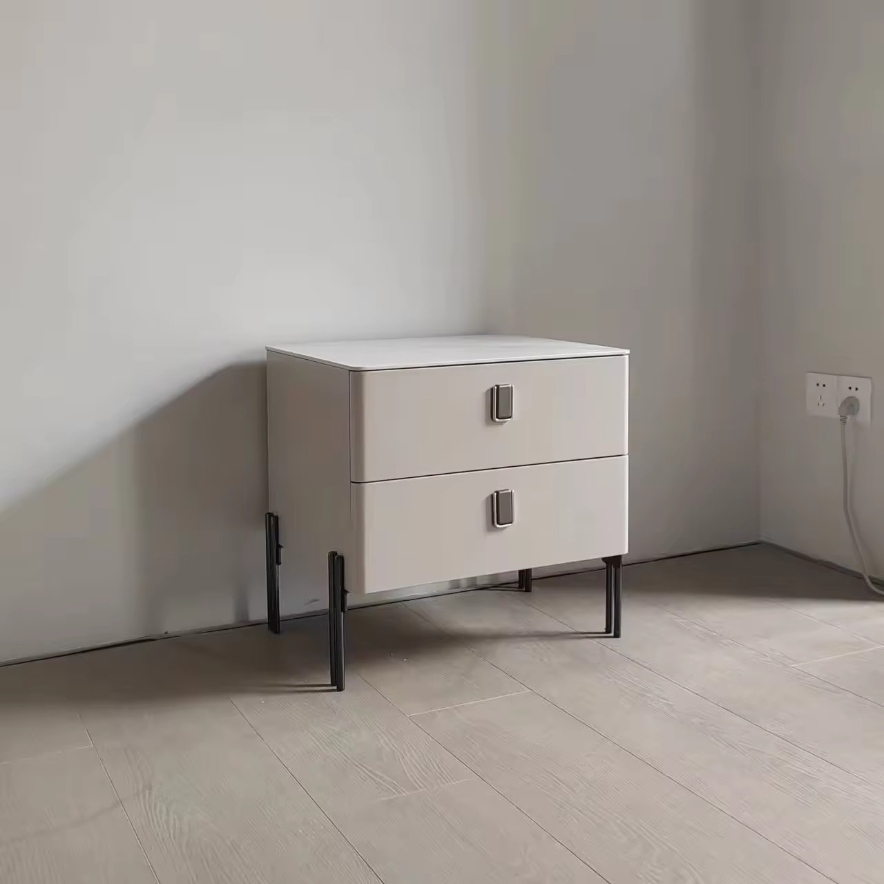 With a modern, minimalist design, this double drawer bedside cabinet complements a variety of bedroom styles. Its neutral finish and clean lines make it easy to match with beds, wardrobes, or other furniture pieces, enhancing the overall look of your room.