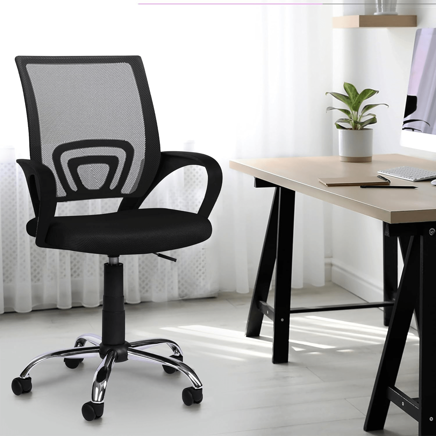 Its ergonomic design follows the natural curve of your spine. This promotes a healthy sitting posture throughout the day. The chair also offers height-adjustable armrests, a 360-degree swivel, and smooth-rolling casters. These features allow easy movement and quick position adjustments, whether you’re working at a desk, studying, or attending virtual meetings.