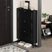 Flip off shoe cabinet with space-saving design, multiple storage compartments, and modern finish. Moreover, it keeps your footwear organized while enhancing home décor.