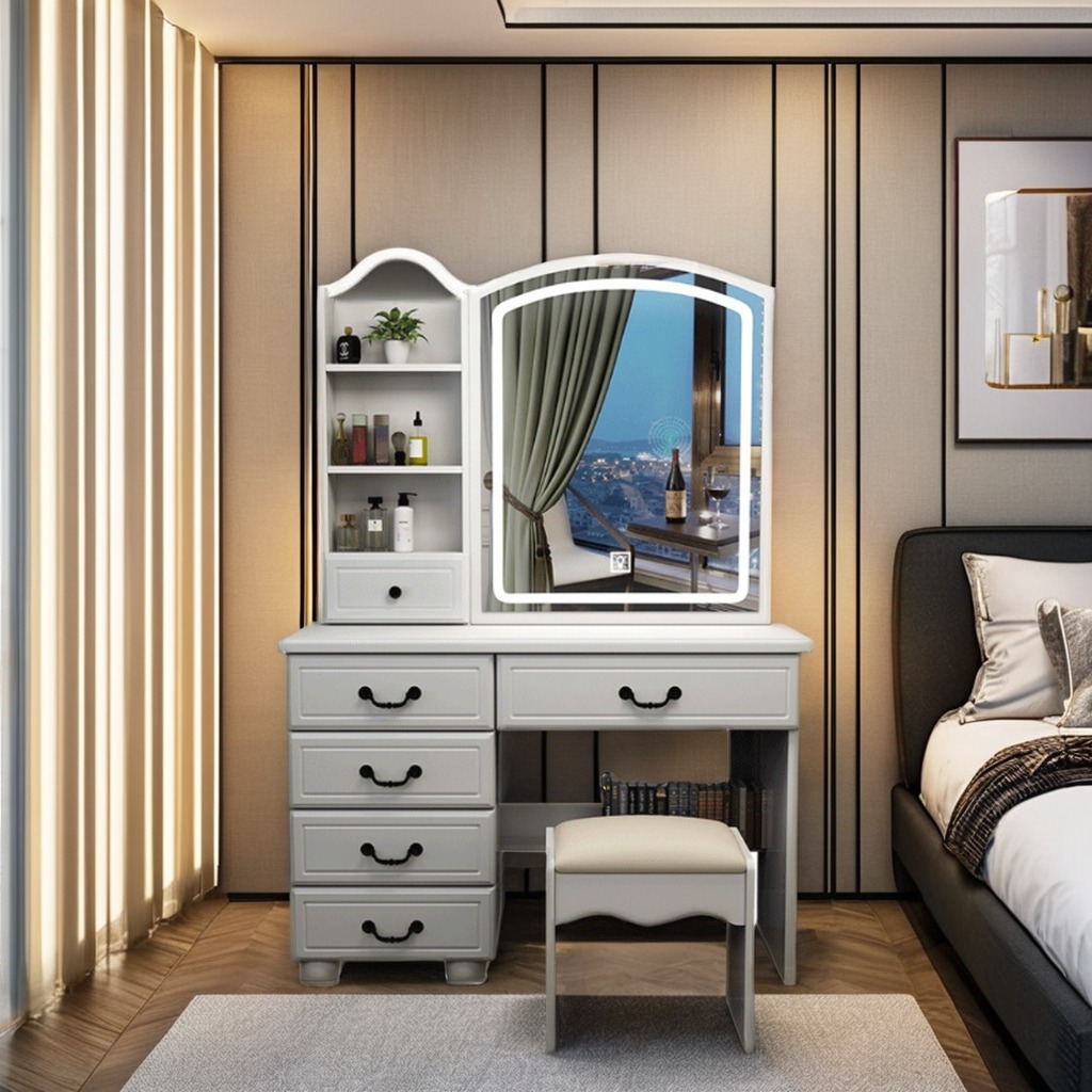 This dressing table is easy to assemble with clear instructions. The smooth wooden surface and LED mirror are simple to clean and maintain, ensuring your furniture remains stylish and functional for years.