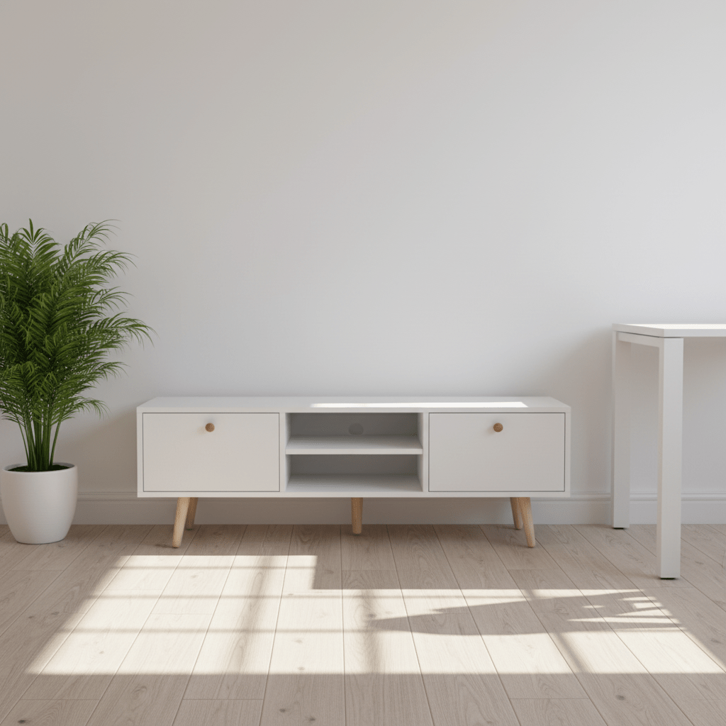 Whether placed in a compact apartment or a spacious living room, this wooden TV stand adapts effortlessly to different layouts. Its neutral design allows it to blend with various furniture styles and interior themes.