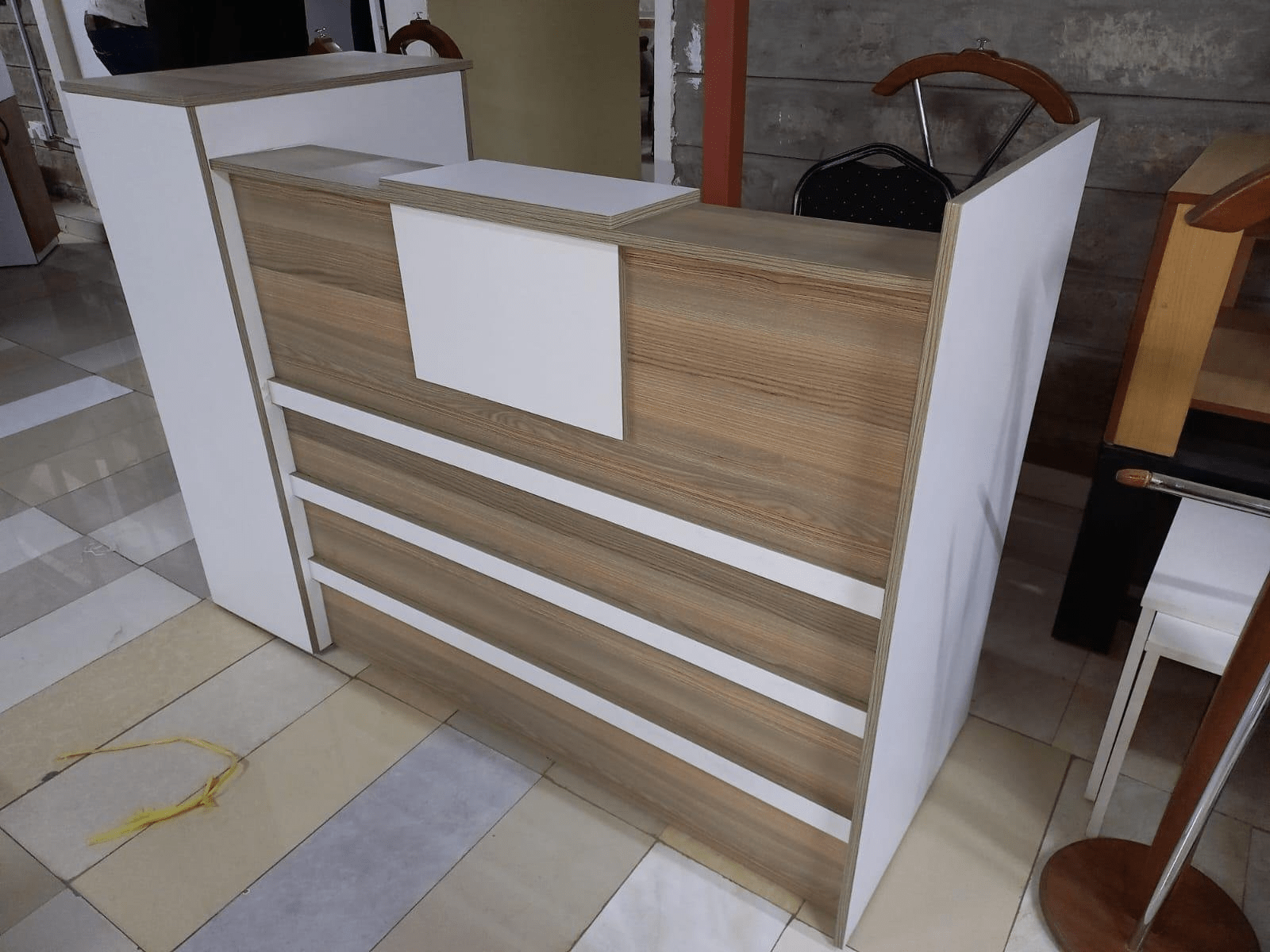 Moreover, the modern finish—available in various colors and textures—complements a wide range of interior styles. From contemporary open-plan offices to elegant boutique spaces, this desk adapts seamlessly. It also includes built-in storage options such as drawers and cabinets to keep essentials within reach but out of sight.