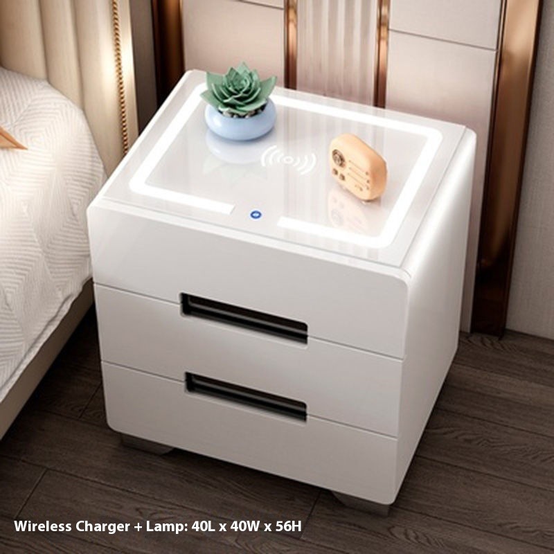 Upgrade your bedroom with the Nightstand with Touch LED Lamp. Features integrated adjustable LED lighting, spacious storage drawers, and a sleek modern design—perfect for bedside convenience and style.