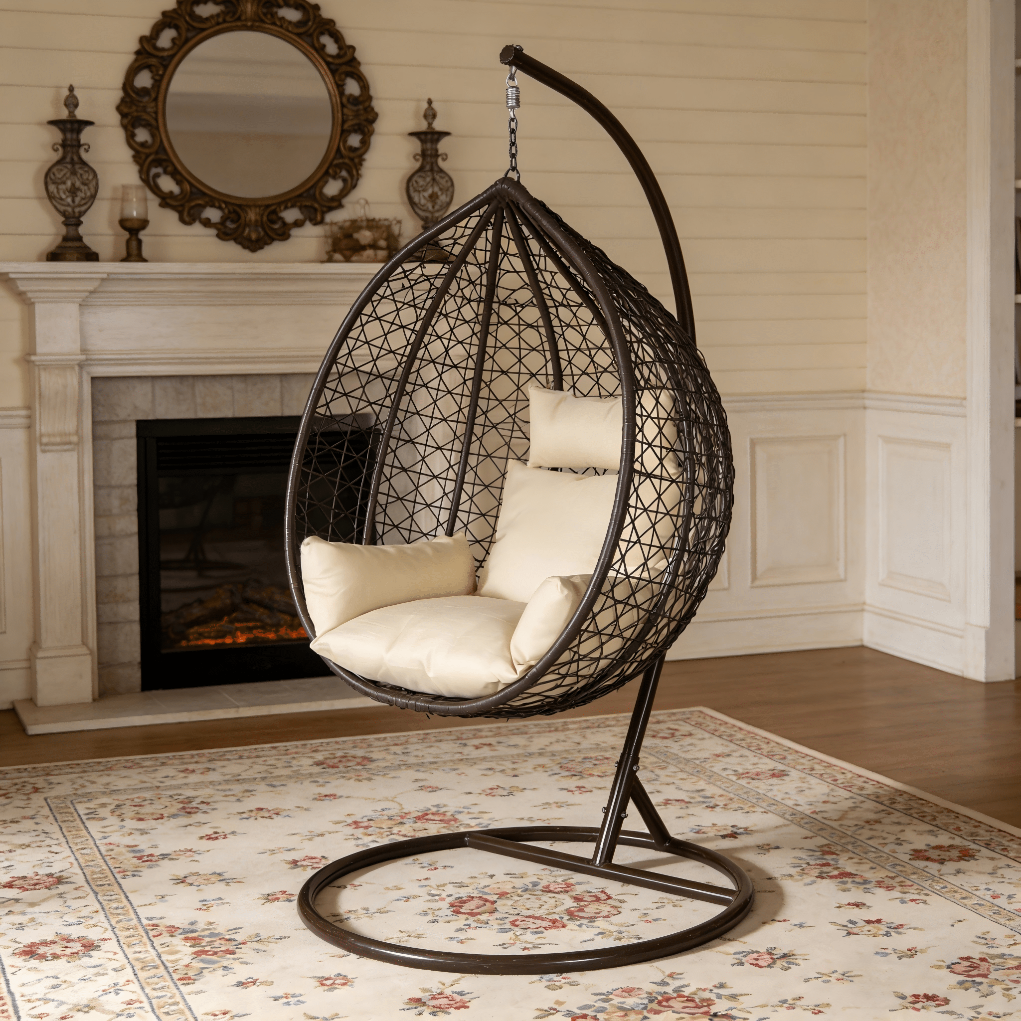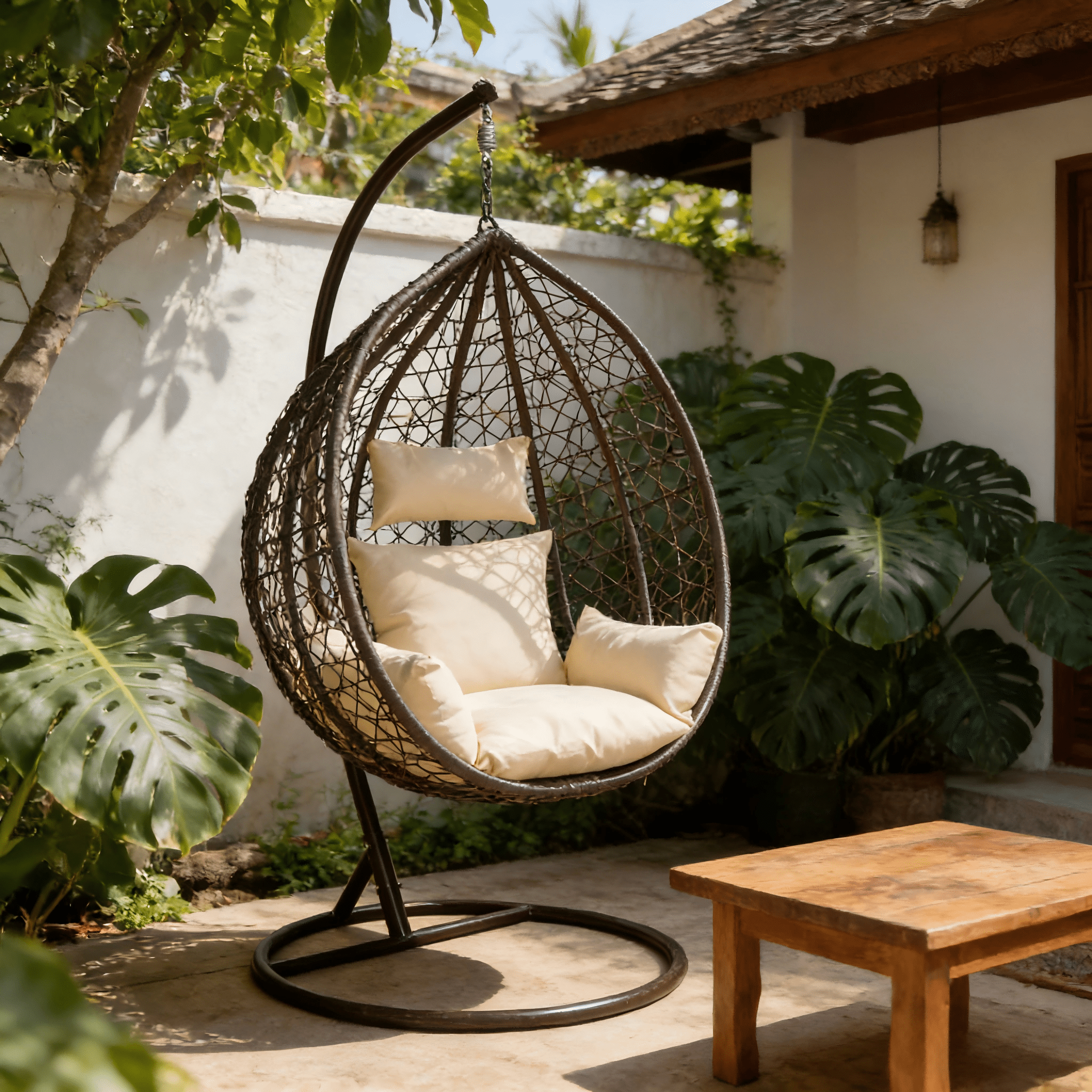While ideal for outdoor spaces like gardens and balconies, the rattan swing chair also works beautifully indoors. It can be placed in living rooms, sunrooms, or bedrooms to create a cozy relaxation corner.