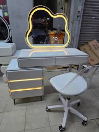 Transform your daily routine with our Vanity Dressing Table with LED Light, designed for elegance, storage, and convenience. Crafted with a sleek modern finish, this dressing table features a spacious tabletop and multiple drawers to organize your cosmetics, jewelry, and beauty essentials neatly. The built-in LED mirror provides bright, even lighting, making makeup application and grooming easier at any time of day. Complete with a comfortable stool, this vanity combines practicality with sophistication, enhancing the beauty of your bedroom or dressing area. Its stylish design ensures it blends seamlessly with both modern and classic interiors.