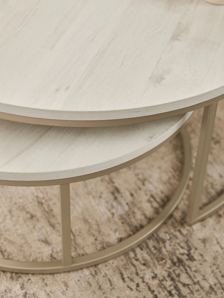 – Set of 2 nesting round coffee tables with a modern white finish