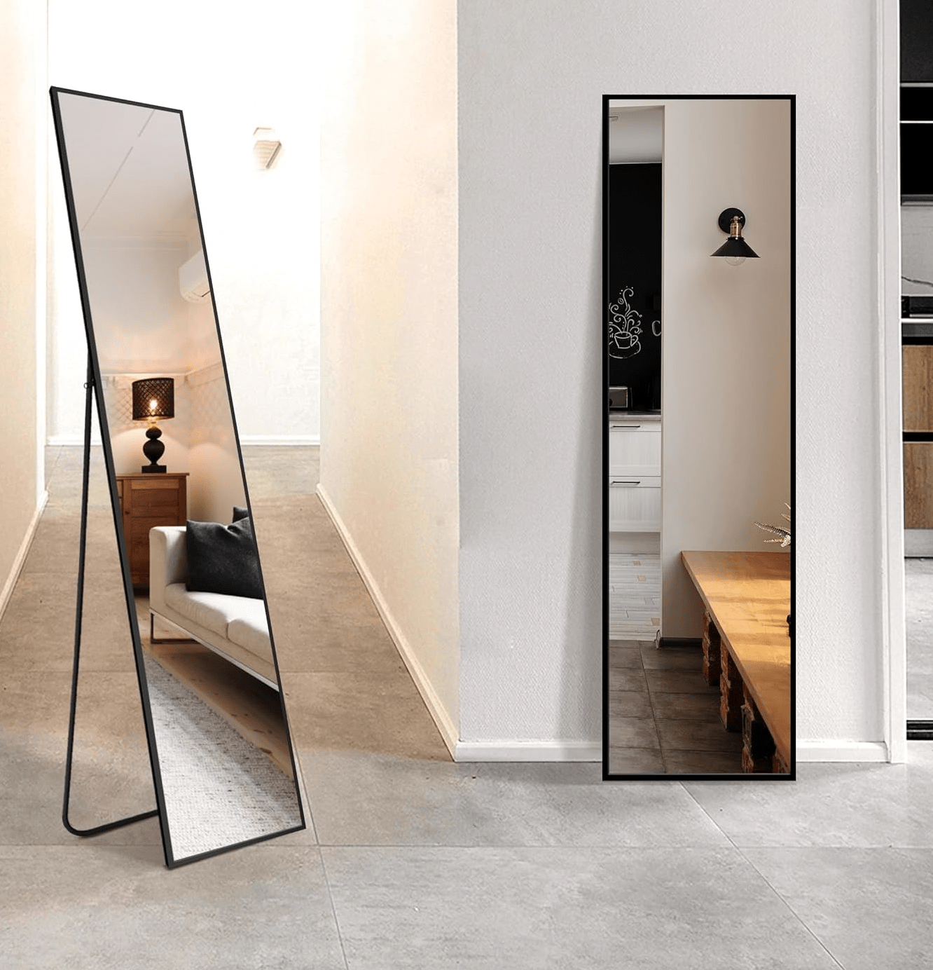 This bedroom mirror features a full-length design, allowing you to view your entire outfit at a glance. Perfect for daily dressing, styling, or accessorizing, it helps you step out with confidence. The generously sized reflective surface enhances natural light and creates the illusion of a larger, brighter room.