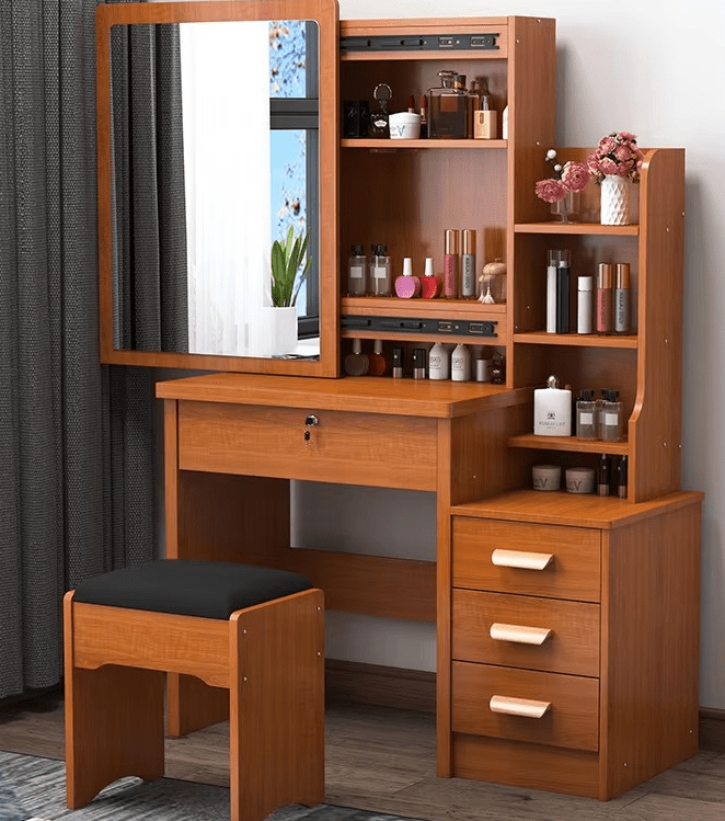 Crafted from high-quality solid wood or engineered wood, this dressing table is built for durability and long-lasting use. Its sturdy frame and smooth wooden finish ensure stability while offering a polished and elegant appearance that complements modern and classic interiors alike.